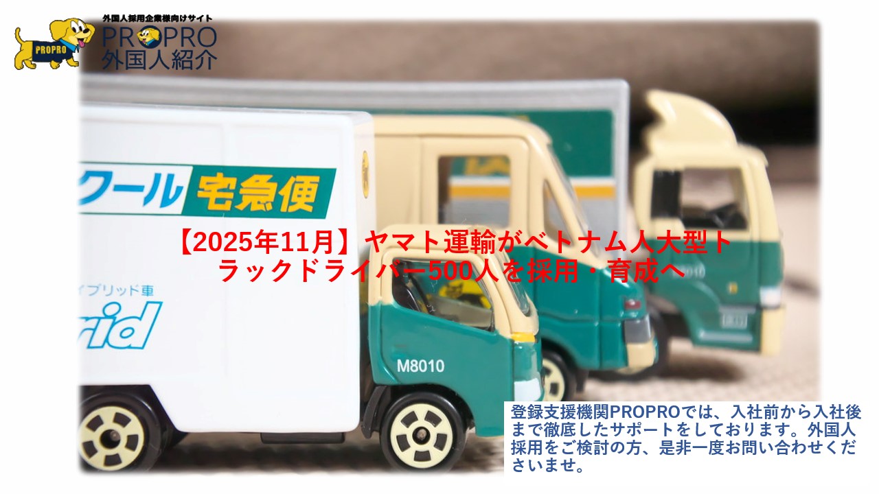 【2025年11月】ヤマト運輸がベトナム人大型トラックドライバー500人を採用・育成へ